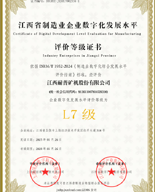 江西省制造業(yè)企業(yè)數(shù)字化發(fā)展水平L7證書